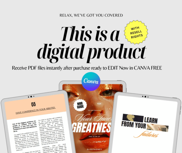 Inside, you’ll find 5 beautifully designed self-improvement guides (fully editable in Canva) covering self-love, confidence, success, and manifestation. Use them to empower your audience, grow your brand, or sell for 100% profit — thanks to full PLR & MRR rights.